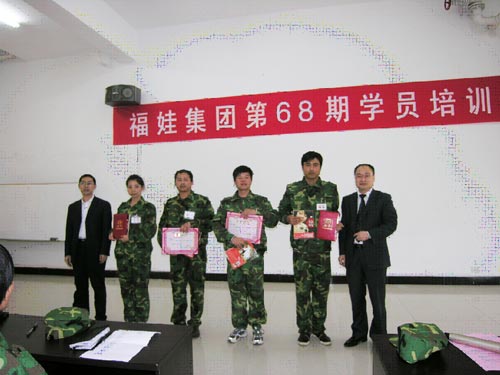 2010年5月8日下午3:00,福娃集团第68期学员培训结业典礼在培训学校举行。人力资源部胡总、营销部周总及邀请的其他职员与20多名新进普工参加了典礼观摩。